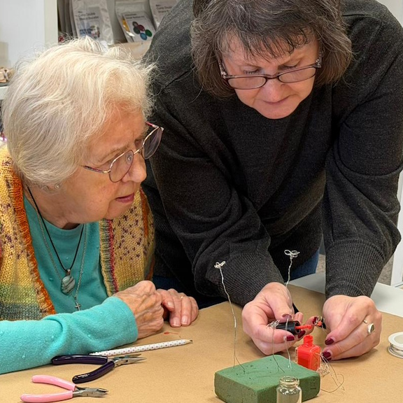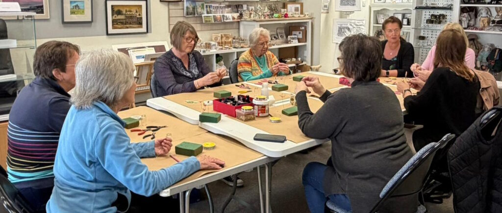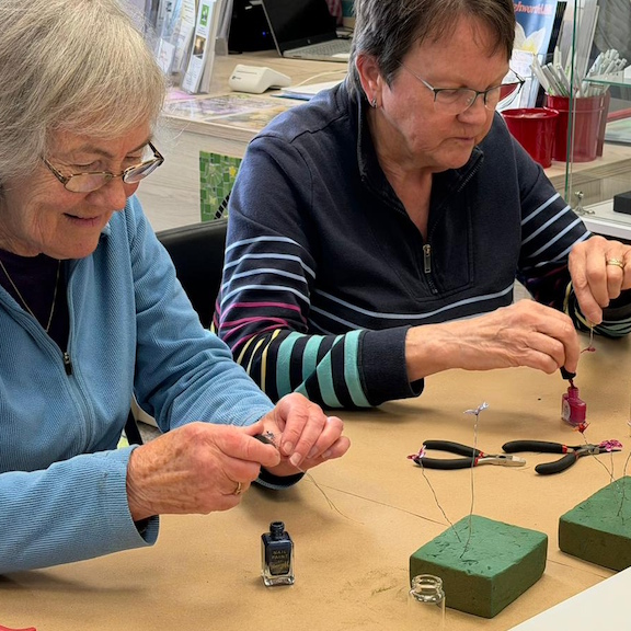 On Monday 23 March a group of eager crafters gathered at Visit Highworth to enjoy an afternoon Mini Make session led by Karen Holland from the Lechlade Craft Barn. The topic for the afternoon was a little introduction to Wire Flowers.